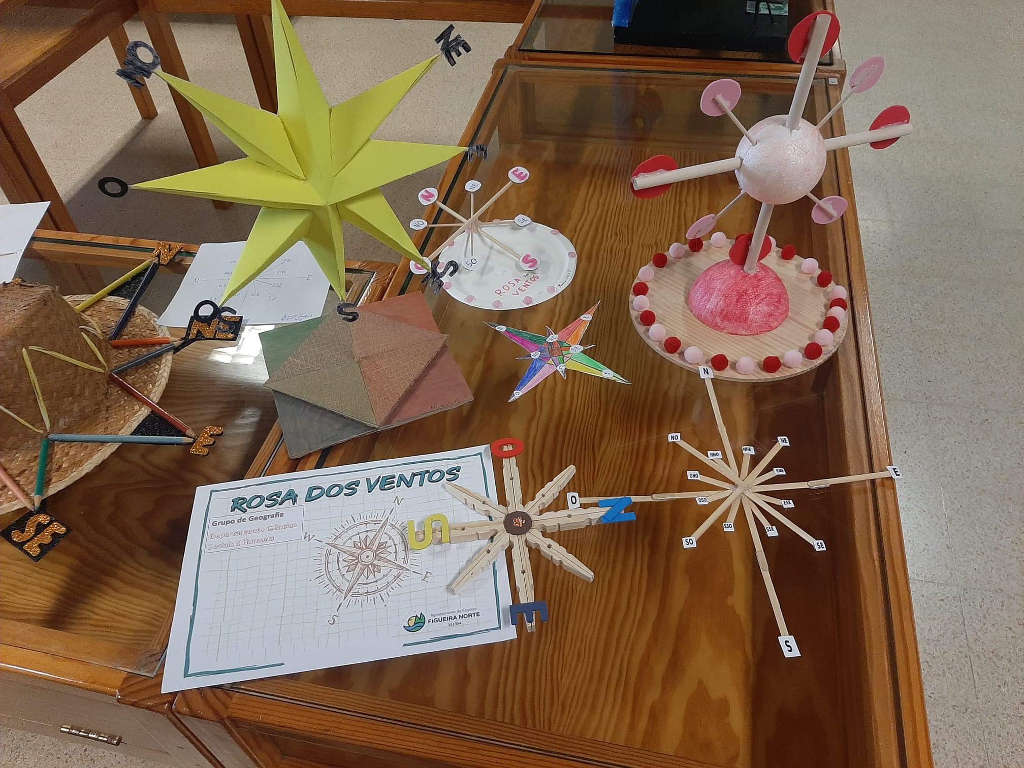 Outra atividade foi a apresentação da exposição com as rosas dos ventos que foram construídas pelos alunos das turmas do 7º E e 7º F.