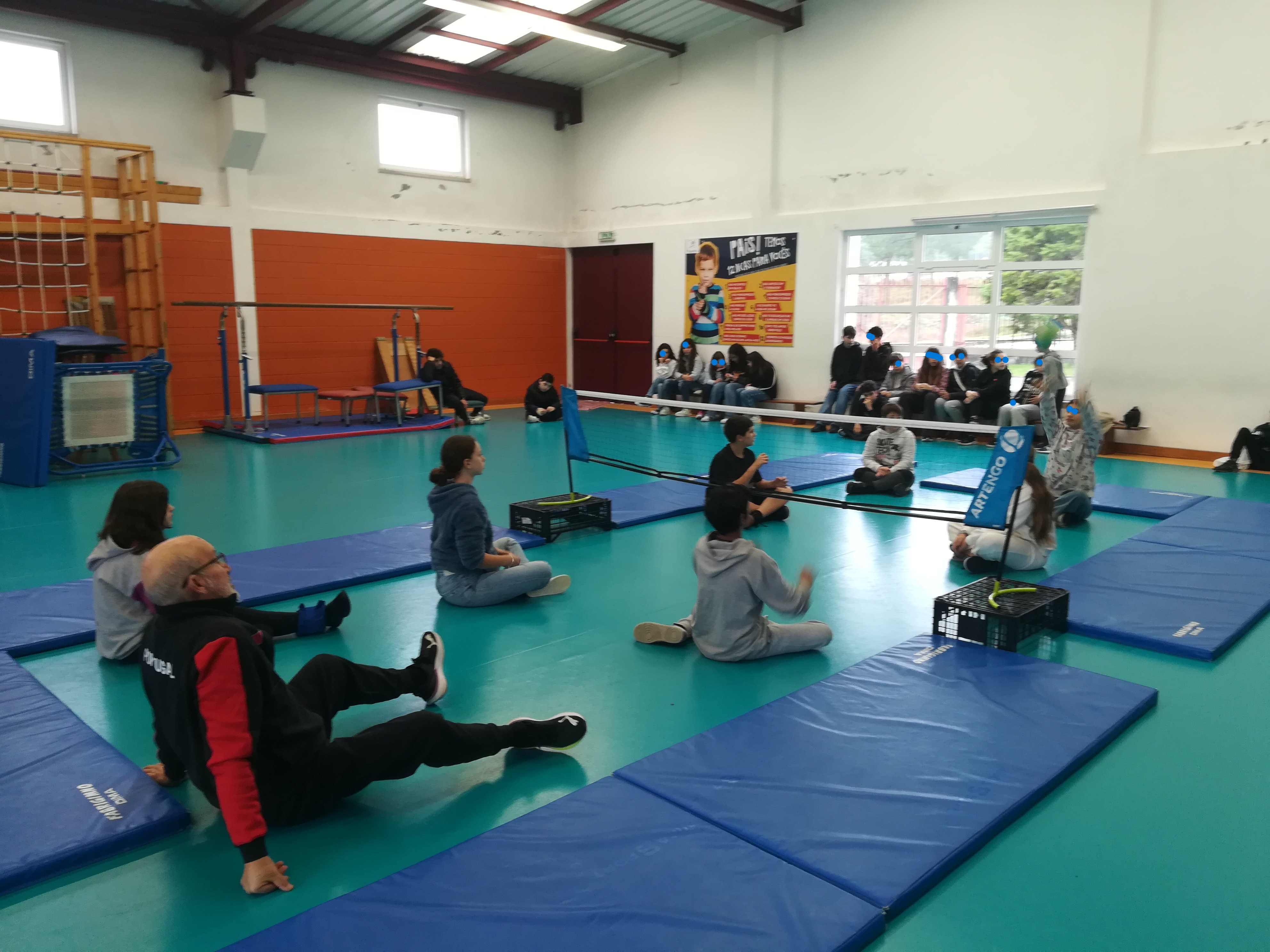 Durante a manhã, as turmas 6.ºB e 7.ºF praticaram modalidades desportivas adaptadas - Goalball e voleibol sentado - no polidesportivo, sob a orientação do docente António José Fonseca. Estas atividades permitiram aos alunos experimentar desafios reais enfrentados por atletas com deficiência, promovendo a empatia e o respeito. O dia ficou também marcado por uma palestra proferida pelo orador convidado João Rodrigues, subordinada ao tema “De igual para igual – Ativismo, Direitos Humanos e + Inclusão”, dirigida às turmas 6.ºA, 6.ºB e 7.ºF. No âmbito desta atividade, os alunos do 6.ºB, acompanhados pela docente Célia Filipe, procederam à leitura de vários artigos da Convenção dos Direitos das Pessoas com Deficiência, reforçando a importância do conhecimento dos direitos fundamentais e da participação cívica. Esta leitura associou-se simbolicamente à ação de ativismo promovida pela Associação Centro de Vida Independente, no passado dia 23 de novembro, em frente à Assembleia da República. João Rodrigues, membro desta Associação, manifestou o seu contentamento ao ver as novas gerações envolverem-se em causas tão relevantes como a defesa dos direitos das pessoas com deficiência, destacando o papel transformador da juventude na construção de uma sociedade mais inclusiva. As alunas Matilde Rodrigues, Mariana Viana e Maria Ladeiro, do 7.ºF, declamaram dois poemas da autoria do professor Álvaro Marques, cujas mensagens fortes e impactantes sobre a inclusão mereceram elogios do orador João Rodrigues. Diogo Lopes, também do 7.ºF, interpretou a canção “Somos Iguais, Diferentes”, igualmente apreciada. Estes momentos artísticos trouxeram emoção à sessão e levaram a comunidade escolar a refletir sobre o valor da diferença. As apresentações contaram com o apoio dos docentes Álvaro Marques, Anabela Ângelo, Célia Filipe, Olga Correia e Paula Xavier, responsáveis pela preparação e organização das atividades.