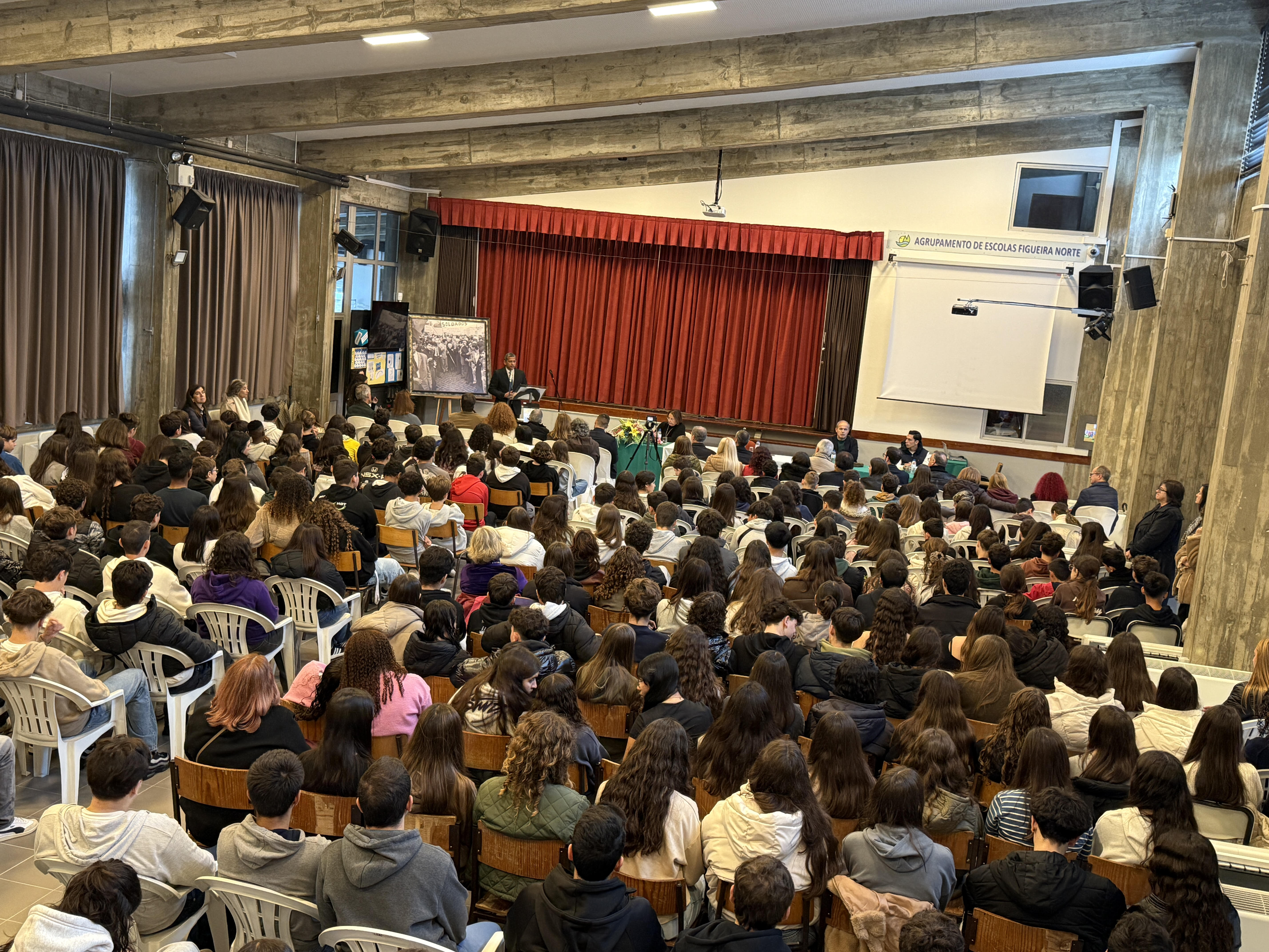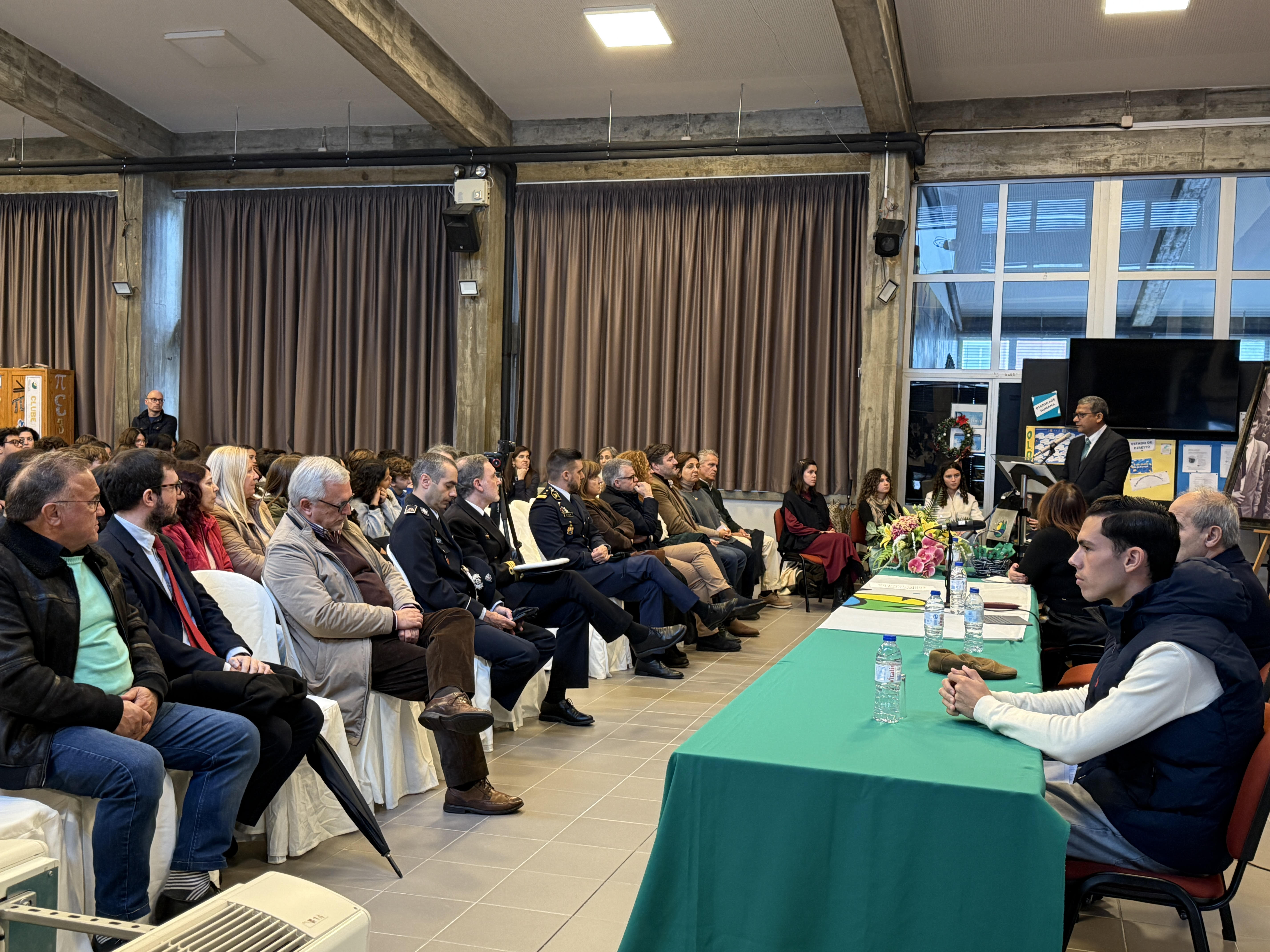 Permitam-me ainda reforçar que sou aluno desta instituição desde o 7.º ano, e é com enorme orgulho e sentido de responsabilidade que hoje represento esta comunidade.»