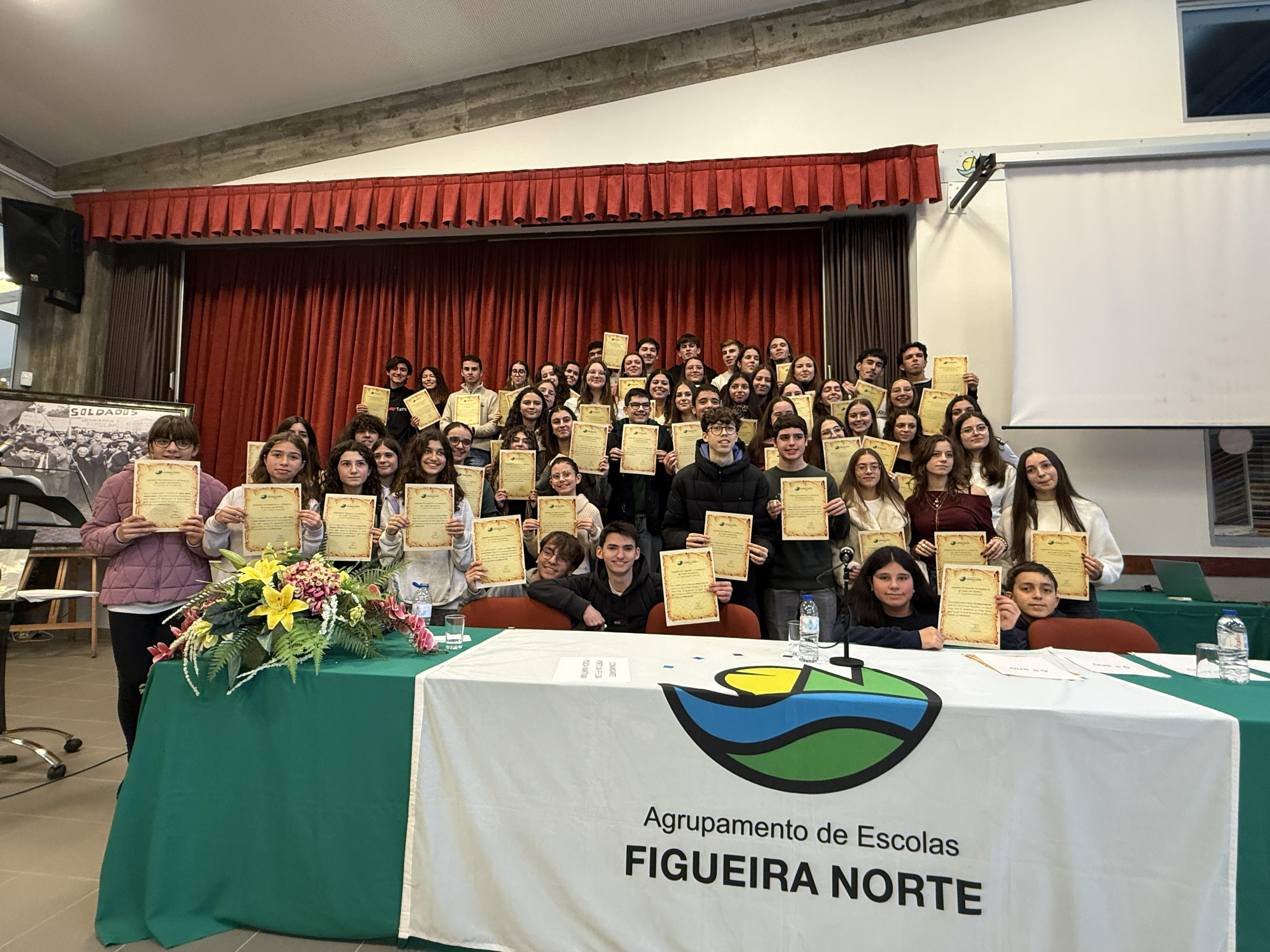 Depois dos discursos do Diretor, da Vereadora e do novo Presidente da AE, passou-se à atribuição dos diplomas de mérito académico e cívico aos alunos do 5.º ao 11.º ano.
