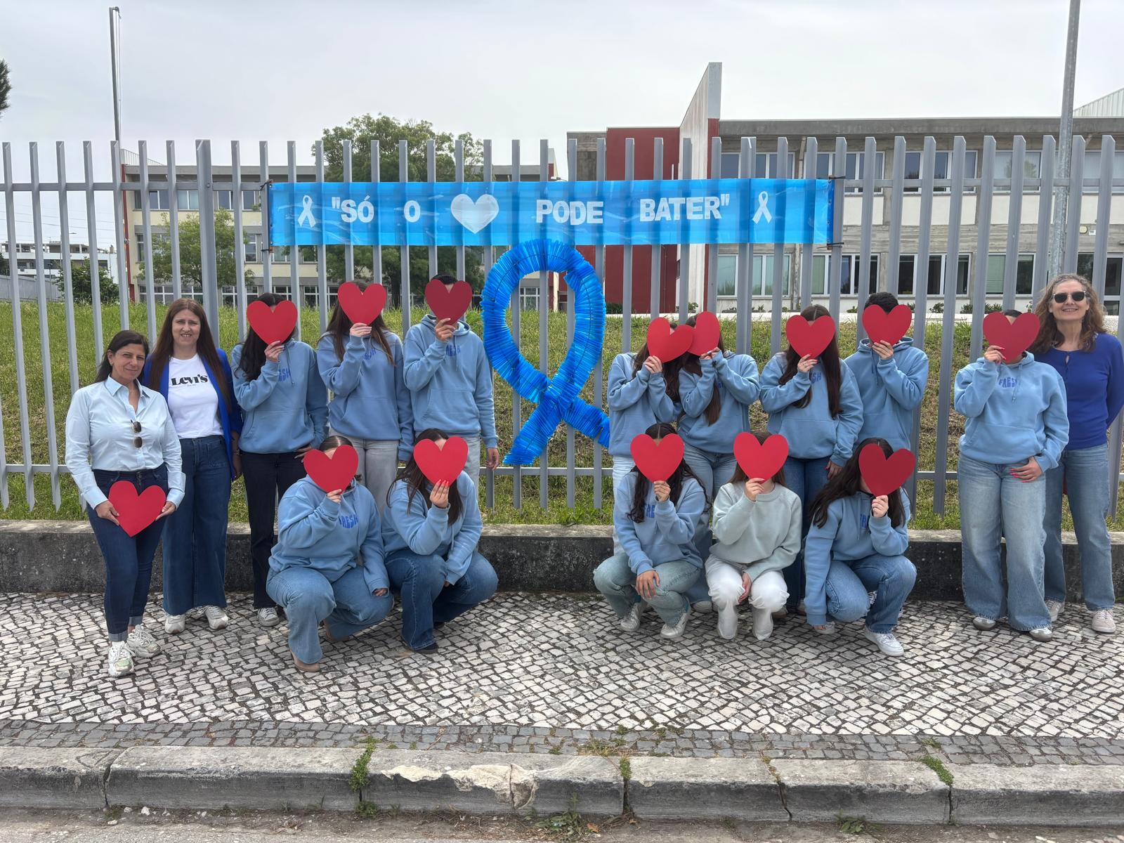 A fotografia que partilhamos assinala o início de um conjunto de atividades dedicadas a esta temática, entre as quais se destacam a construção de um laço humano, no exterior e na Biblioteca Escolar, e a reflexão conjunta sobre o que são os maus-tratos e de que forma podem ser prevenidos.
