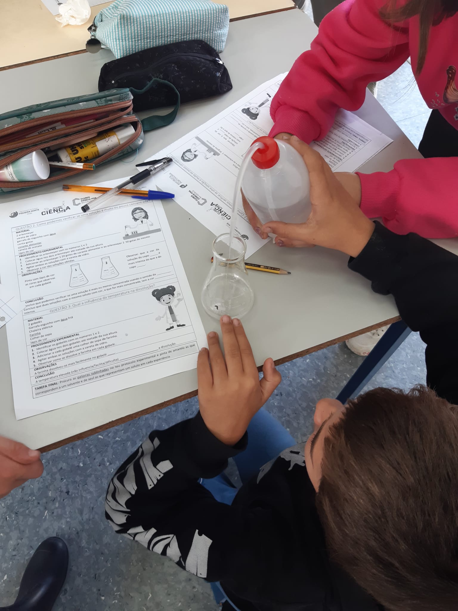 As professoras e alunas do Clube estão a dinamizar, ao longo deste 1.º período, uma atividade onde os jovens cientistas irão explorar o fenómeno da dissolução e a formação de soluções aquosas, descobrindo a substância solúvel através de três experiências práticas: