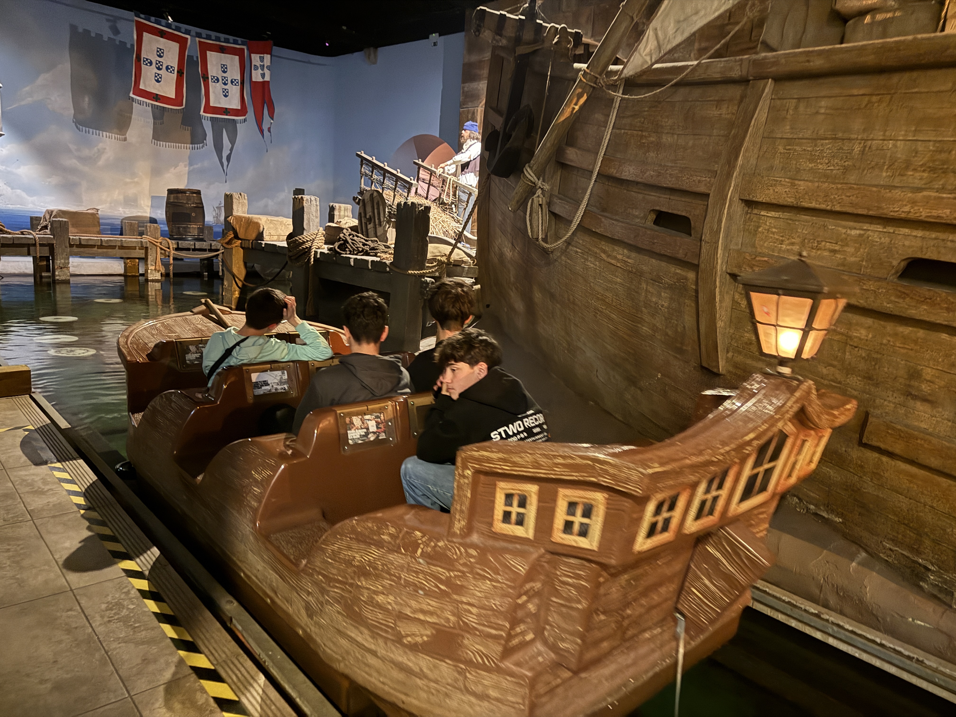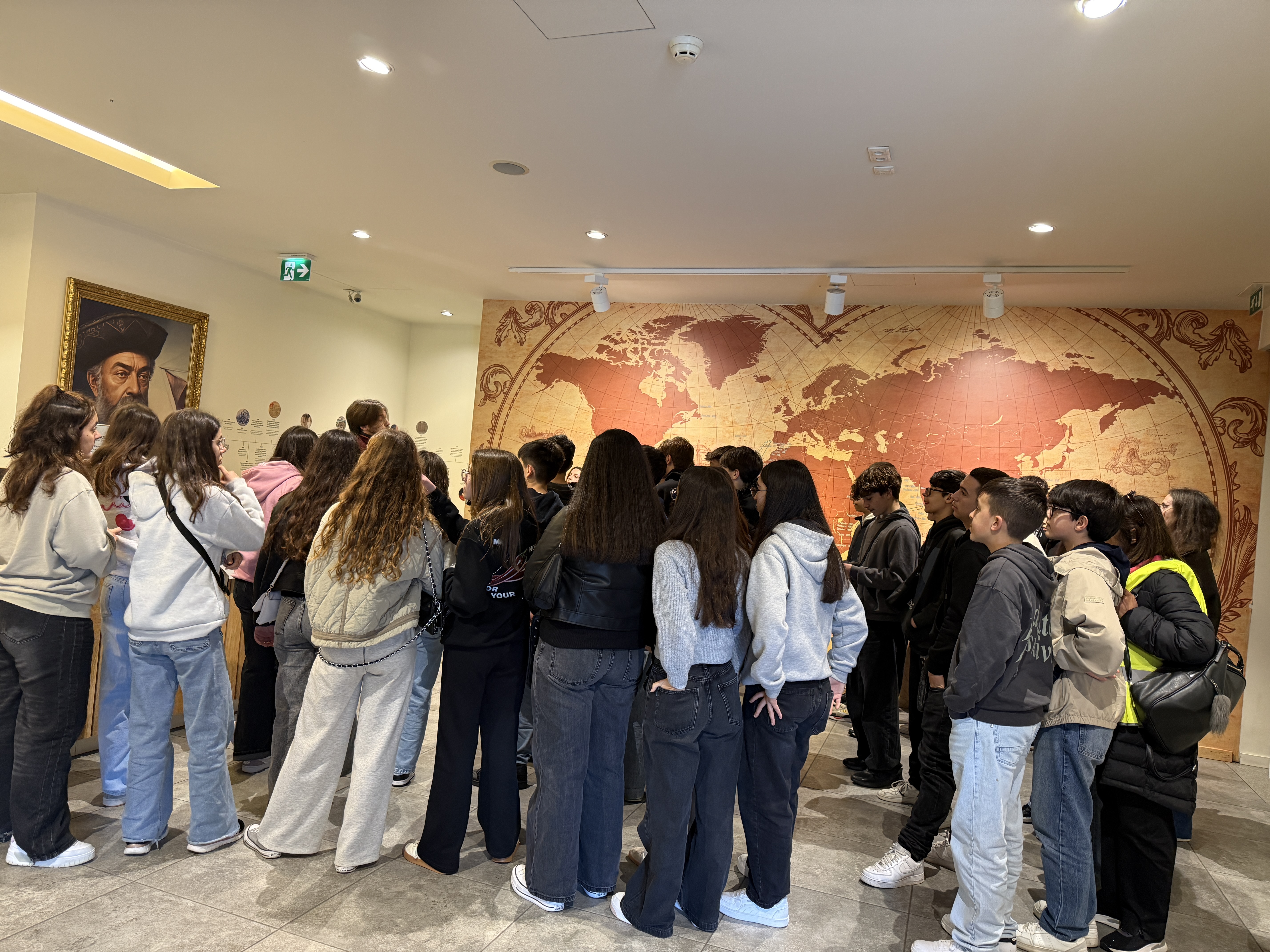 Durante a manhã, no museu interativo, mergulharam nos ambientes vividos pelos navegadores portugueses dos séculos XV e XVI, revivendo a época da expansão marítima. Entre caravelas, mapas, instrumentos náuticos relatos e uma “viagem de barco” pelos continentes, os alunos puderam compreender de forma imersiva os desafios enfrentados pelos exploradores e a importância do conhecimento científico na ousadia de “dar novos mundos ao mundo”.
