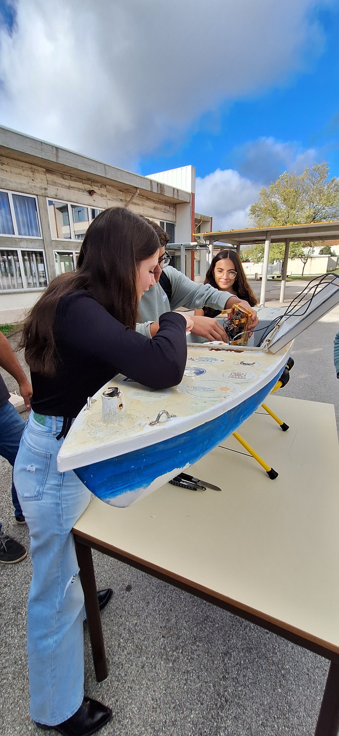 No dia 29 de outubro, técnicos da empresa beAtsail estiveram na escola para trabalhar em conjunto com os alunos do Clube Ciência Viva no desenvolvimento do projeto. As imagens captadas mostram o minibarco, visivelmente desgastado pelo mar.