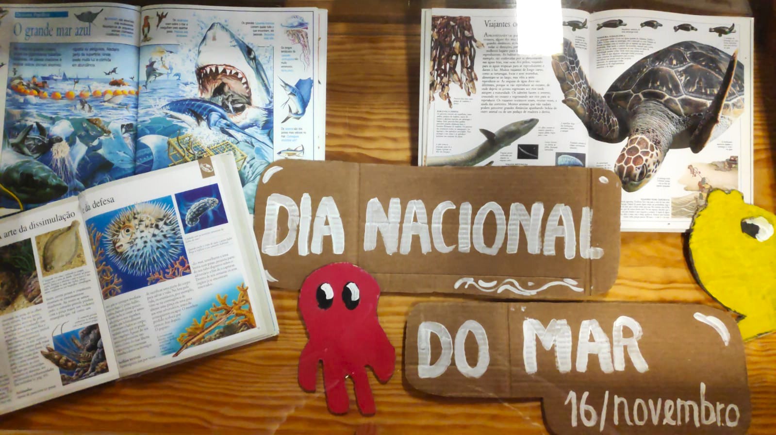 No âmbito da comemoração do “Dia Nacional do Mar”- 16 de novembro – os alunos da turma 7.º F, da EB 2.3 Pintor Mário Augusto, do Agrupamento de Escolas Figueira Norte, participaram com entusiasmo na elaboração de uma exposição de livros ilustrativos das diversas riquezas que o nosso mar oferece.