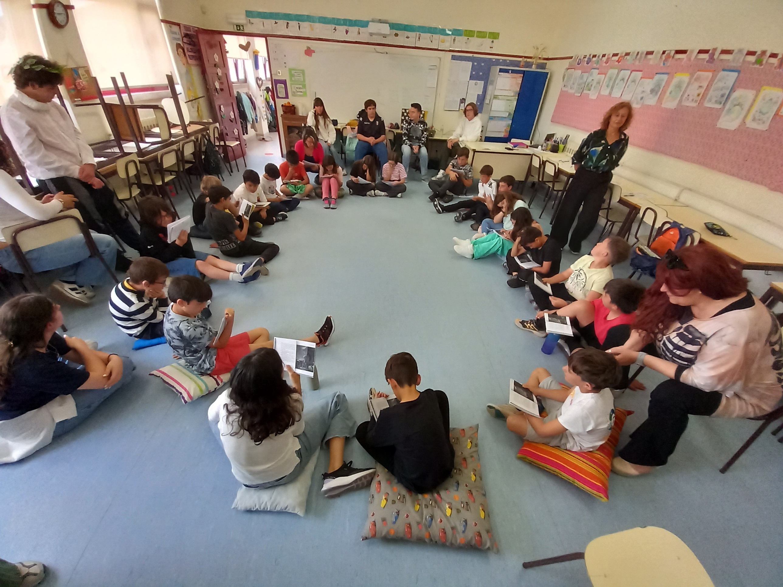 Na tarde de 20 de abril, o Clube de Leitura foi à Escola do 1.º CEB de Quiaios fazer uma roda de leitura.